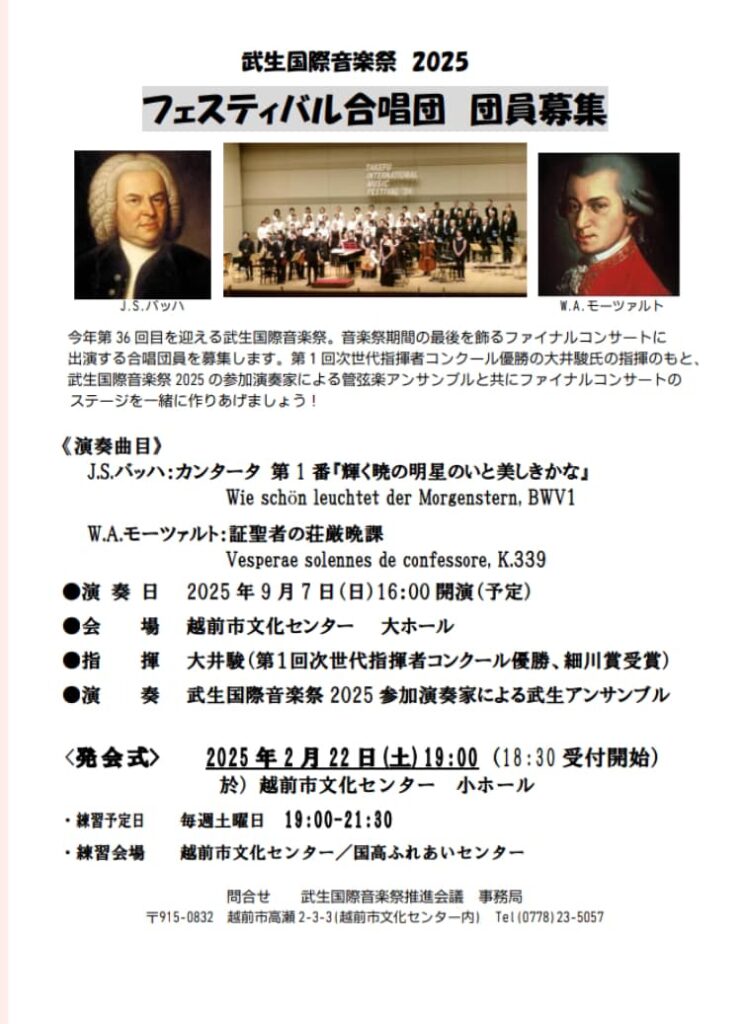 発会式は2月22日19時より越前市文化センター小ホールで行います。福井内外の合唱人のご参加をお待ちしております!(※発会式の後のお申込み・ご参加も可能です)
